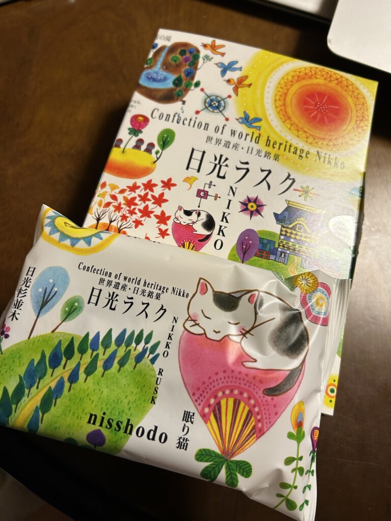 ということで昨晩はストレスが多かったのか、夜遅くに日光のお土産の日昇堂さんの「日光ラスク」を食べてしまった。パッケージがとても可愛くてもったいないから開けてなかったんだけど個包装された高級そうな袋を開けてみたら小さくコロンとしたラスクがいっぱい。おいしくてぱくぱく食べちゃった。最近、甘いものも食べられなくなってきたな、とか思ってたけど毎日どの時間帯もなんらかのお菓子を食べているからむしろ気をつけなくてはいけないのかもしれない。でも可愛くおいしいものは元気をくれるから昨日みたいな日は食べて正解。