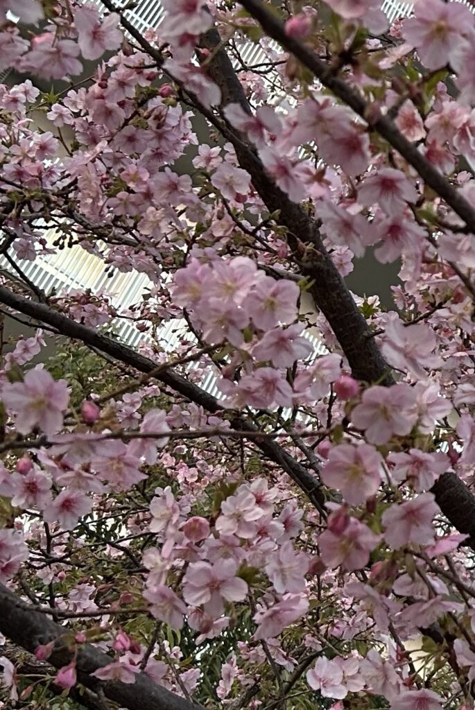まだ暗い。今日はあたたかいどころか暑くなるらしい。たしかに早朝から暖房いらず。今日はいっぱい歩く予定。