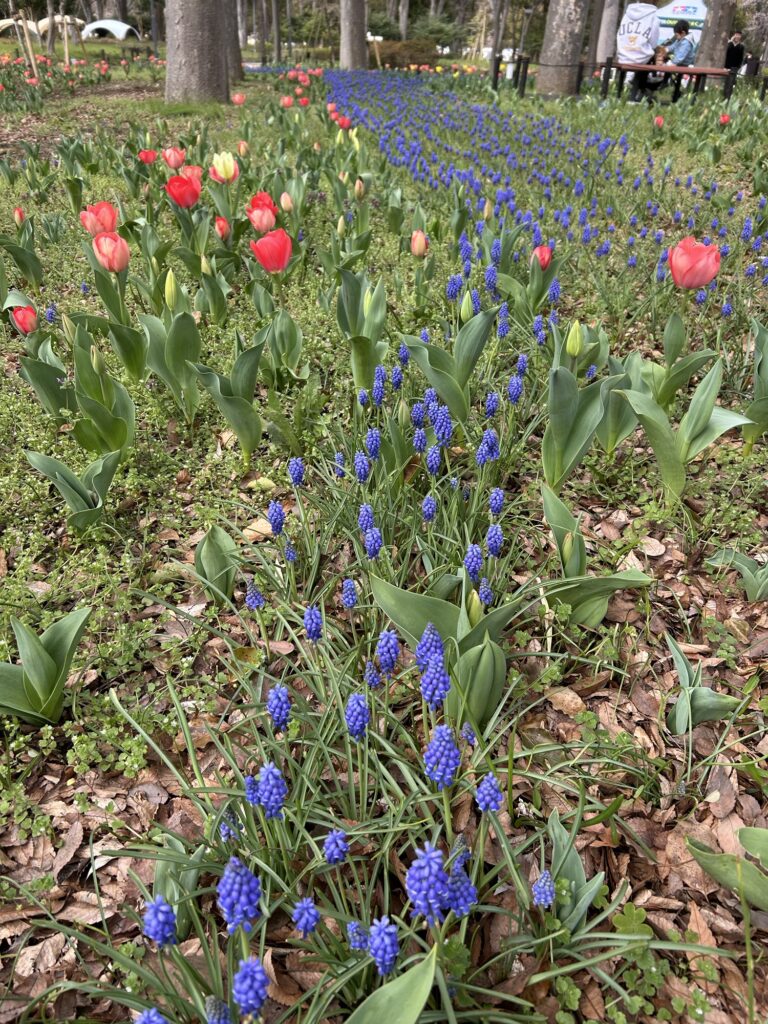 水分の多そうな空。昨晩、オフィスのビルを出たらタイルが濡れていた。やっぱり雨になったんだ、と思ったが降ってくる雨粒は見えない。もう降り終わったのかな、と傘を取りにいくことはせず屋根の外にでたらポツポツと雨があたった。夜は降るといっていたし、傘を準備しておかないとと思っていたのに出るときには忘れていた。でもいつも通り「このくらいの雨なら」と歩き始めた。結構な雨の日も「これくらいの雨なら」と傘を取りに戻らず後悔することもあるが、昨晩は本当に大したことがなかった。桜を散らさずにいてくれたのかもしれない。今、どこも花たちでとてもきれい。少しの遠回りで見たこともない景色と出会える。オフィスのそばの新宿中央公園の整備をなんともいえない気持ちで日々眺めてきたが、新しく植えられたたくさんの球根はそれはそれで可愛らしく、昨日は咲き始めたチューリップの写真をたくさん撮ってしまった。毎日、雨でも早足で歩いていてもつい足を止めて写真を撮ってしまう。大地震など自然災害への支援も足りない中、同じ人間のせいで「普通の」日常にも燃料不足の影響が生じている今、次々花が咲くからキリがない、と思えるのはとても幸せなことだが。これが束の間でありませんように、と願う。
